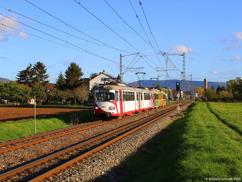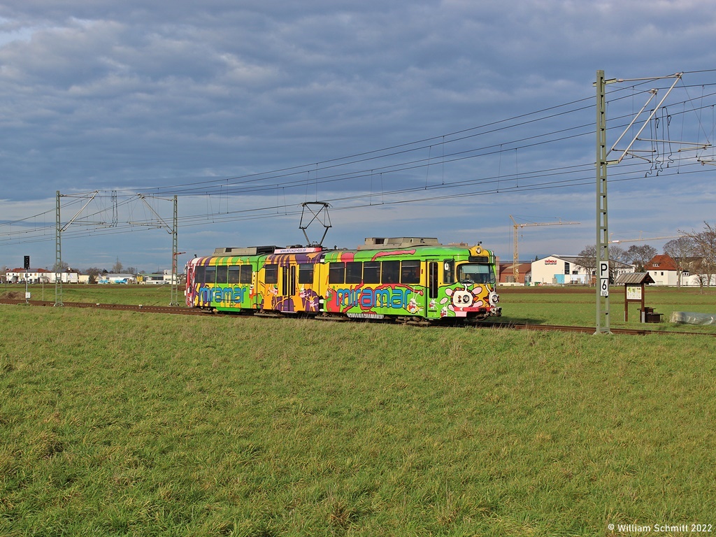 Anfang der 1980er Jahre hatte die OEG Fahrzeugmangel, daher schaute diese sich nach Gebrauchtfahrzeugen um. Kurzfristig lieh man sich den Hängerzug 1018+1058 der Rhein-Haardtbahn aus und fuhr mit diesem zwischen Mannheim Hauptbahnhof und Heddesheim.