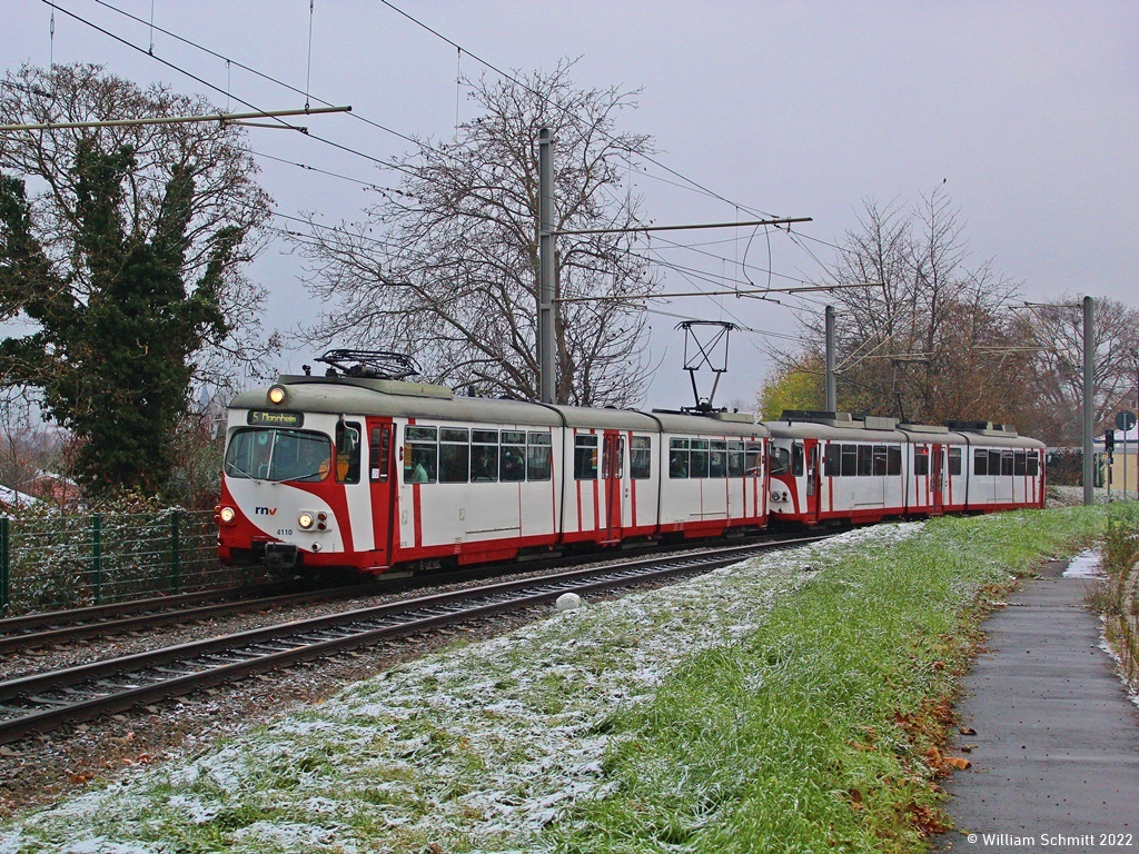 4100+4115 zwischen Edingen West und Neu-Edingen | 4110+4111 bei frostigen Temperaturen am Deutschen Hof in Mannheim-Seckenheim |